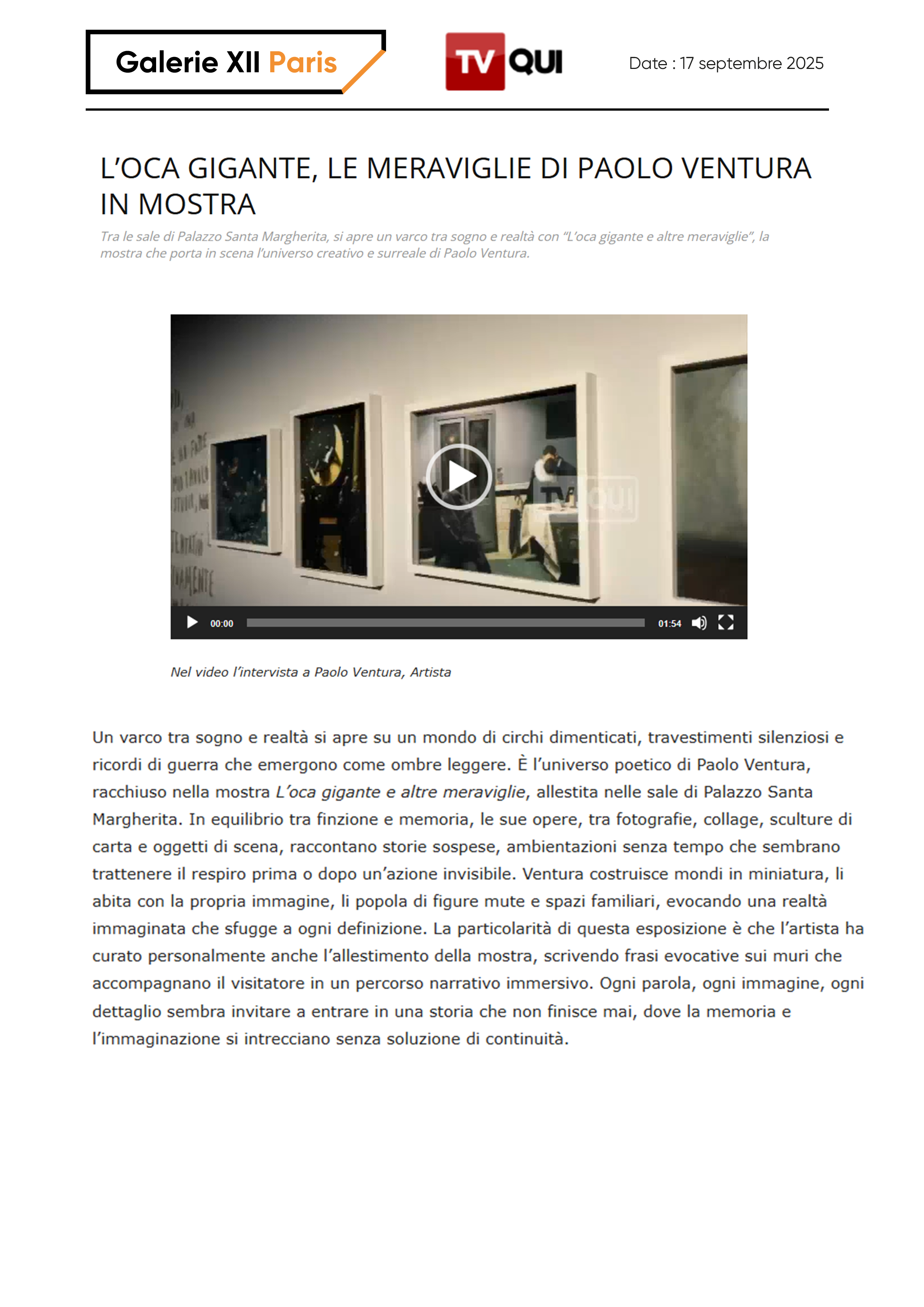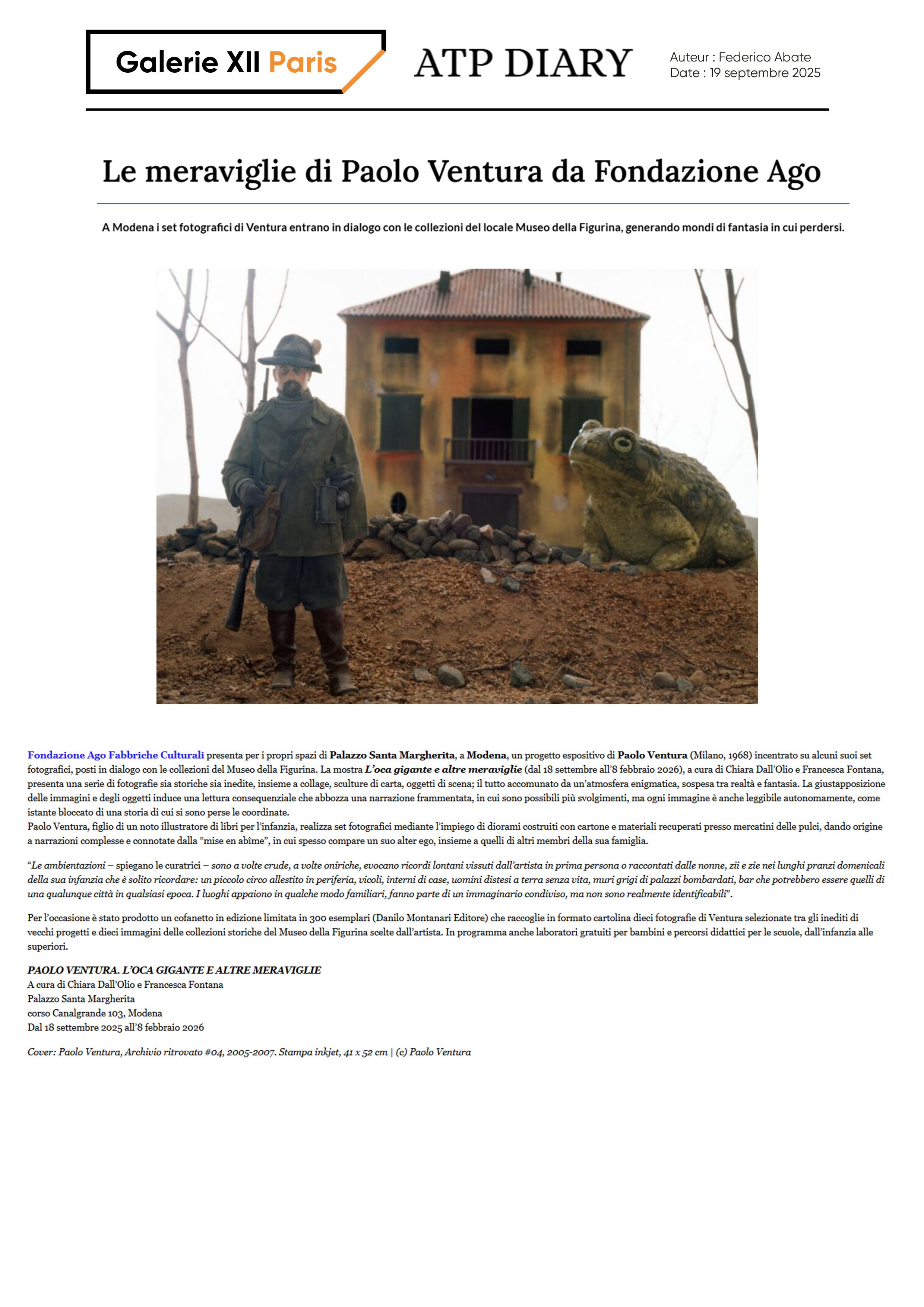 Paolo Ventura is a multidisciplinary artist who uses different techniques (photography, collages, painting, sculpture, drawing, scenography) to tell visual stories. The son of an illustrator, his childhood was rocked by the sketches and stories of his father. This wonder and this childhood passion always permeate his work of narrative staging where we regularly find images of street artists, theatres and cinemas, which are not without evoking certain compositions of Toulouse-Lautrec’s paintings. After studying painting in Milan, Ventura devoted himself to photography and moved to New York where he collaborated with fashion magazines, bringing from that time a very personal look in this formatted media. At the same time, he began working on personal projects that led to a first commission from the Washington War Museum. War Souvenir marks the launch of Paolo Ventura’s artistic career with exhibitions in major capitals, from Moscow to Milan, from Paris to New York. Since then, he has benefited from thirty solo exhibitions in institutions and galleries, and participated in as many group exhibitions. In 2020, on the occasion of an important retrospective at the Centro Italiano per la Fotografia in Turin, Silvana published a catalogue raisonné of his work. .