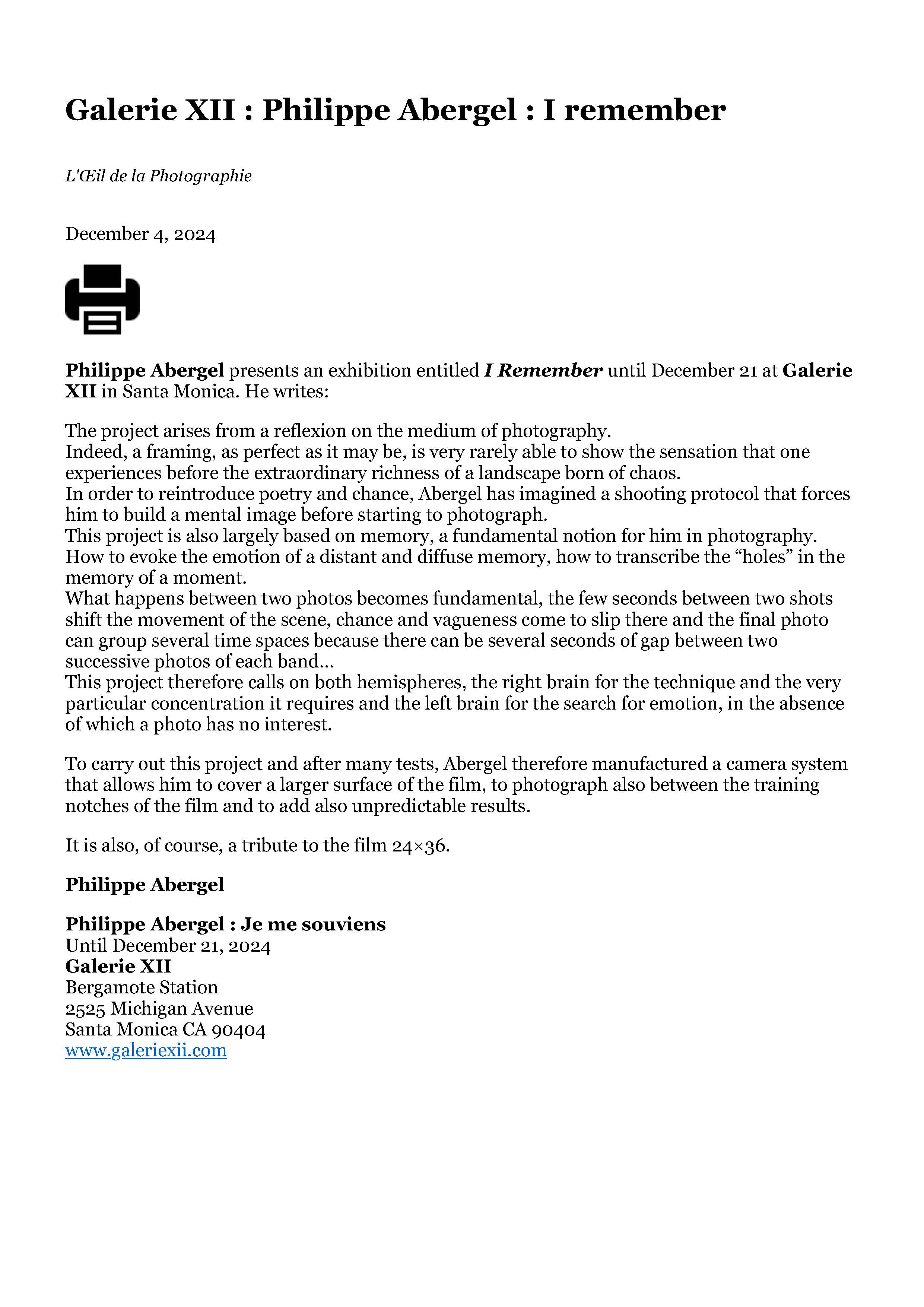 2004 Exhibition : Mois de la Photo H.Meurice / Gallery Dina Vierny