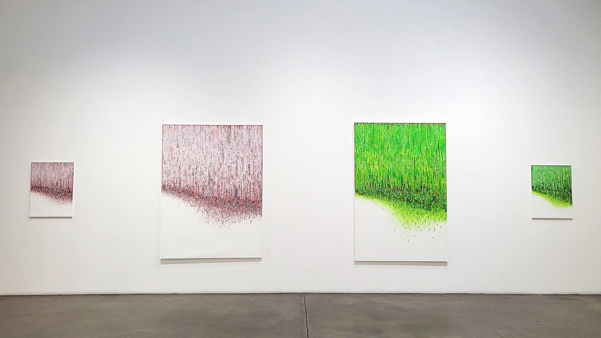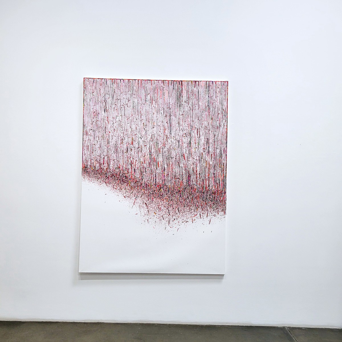 Le travail de Kur Kyung-Ae allie exploration archéologique et geste régénératif. Chaque toile, construite en dizaines de couches d’acrylique, est ensuite sculptée au scalpel pour révéler des textures et des couleurs enfouies. Ces surfaces stratifiées évoquent une mémoire fragmentée, en résonance avec les bouleversements historiques du 18 mai 1980 à Gwangju, interprétés ici dans un langage résolument abstrait.